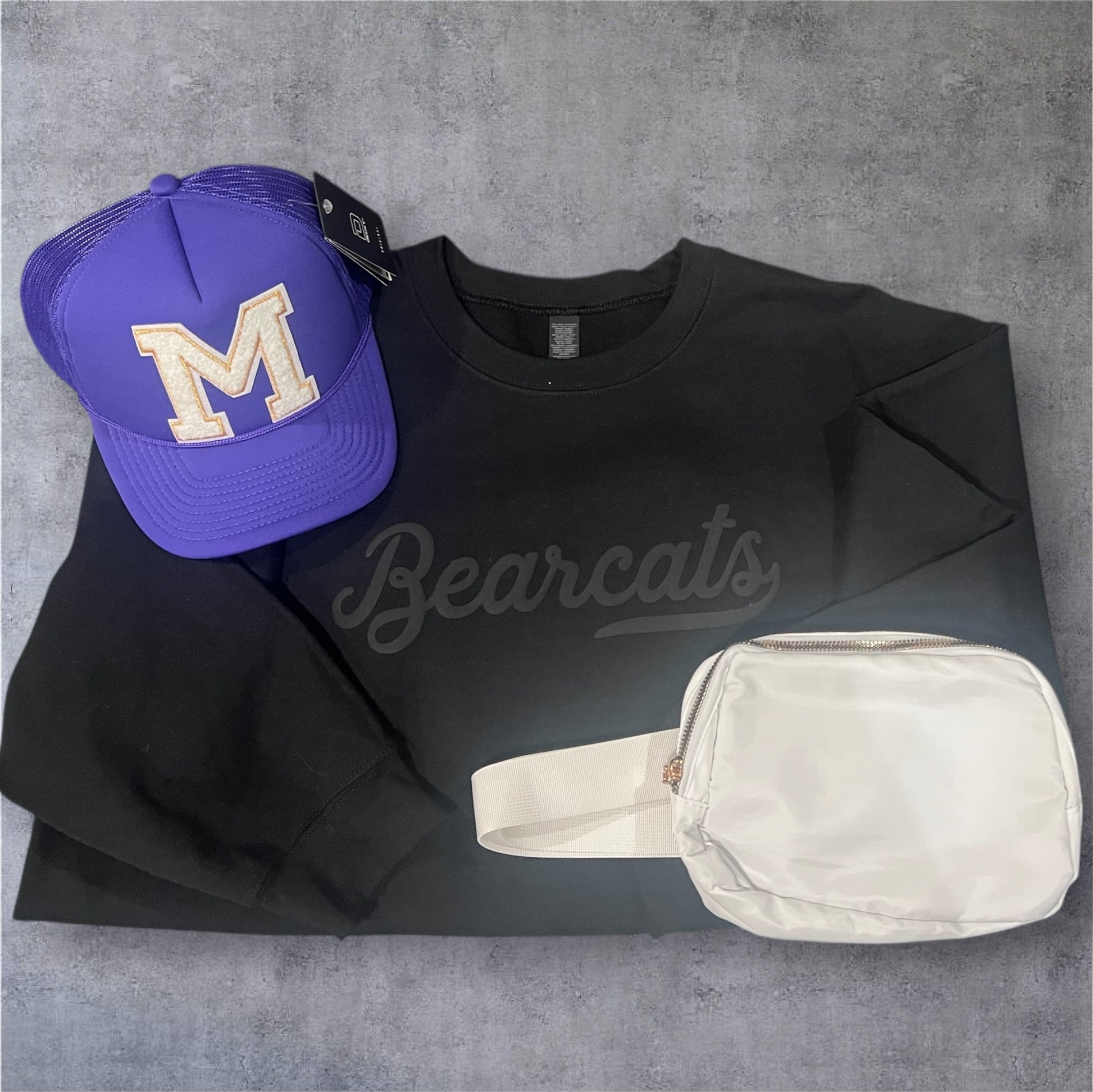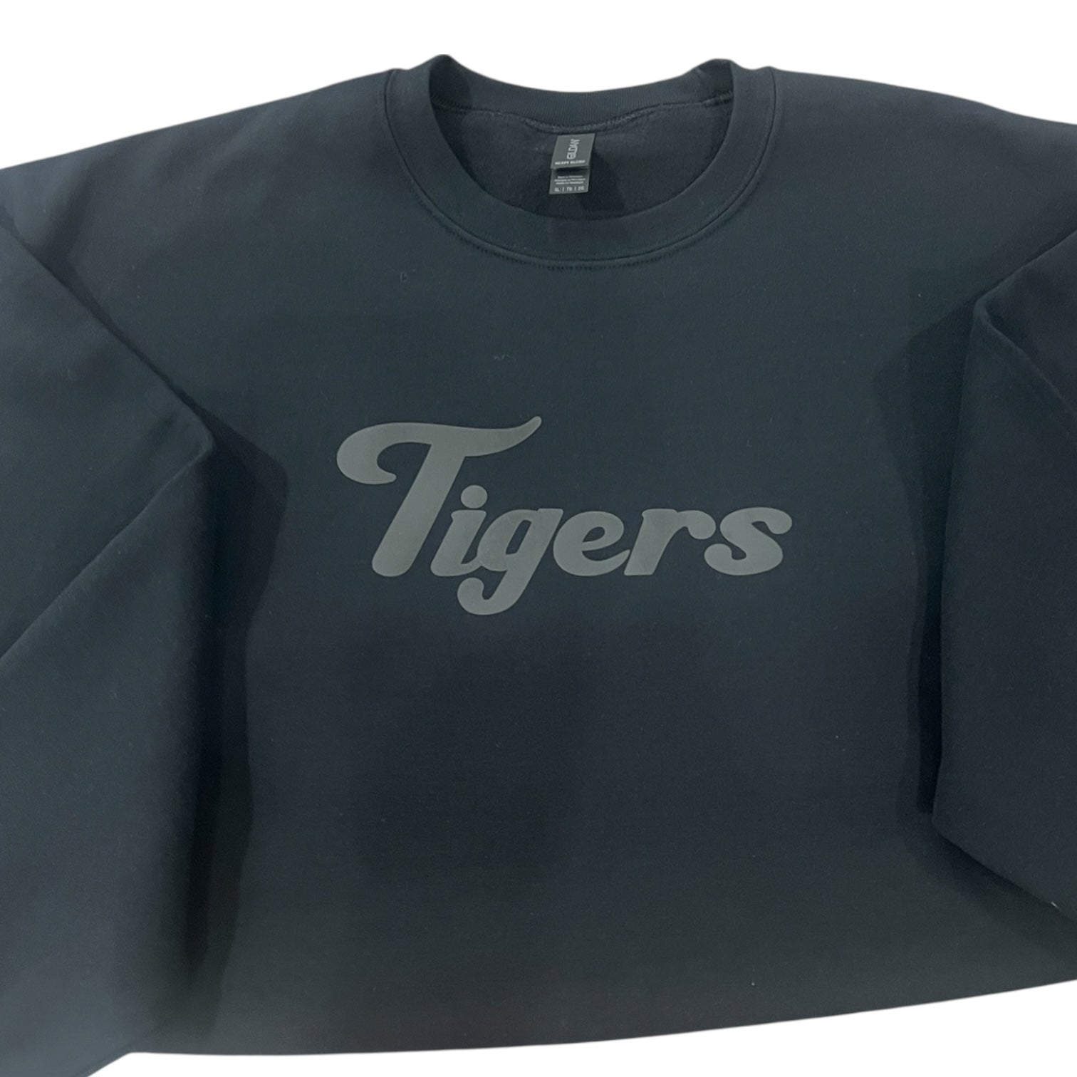 Black Gilden heavy cotton crew neck sweatshirt with black puff print 💚 great for game day and super comfy.